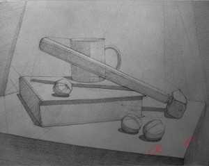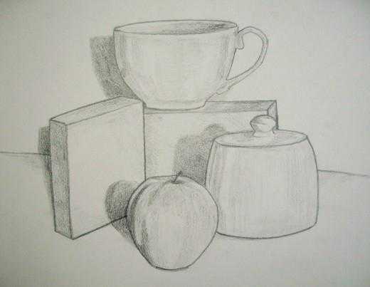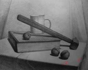 Ну вот. Пора приступать к финалу – к окончанию нашего натюрморта из предметов. Думаете, что это так просто, мол, хлопнул в ладоши, отбросил карандашик, глянул на рисунок и пошел чаёк на кухню пить? Для успешного завершения нашего рисунка нужно учитывать парочку закономерностей.