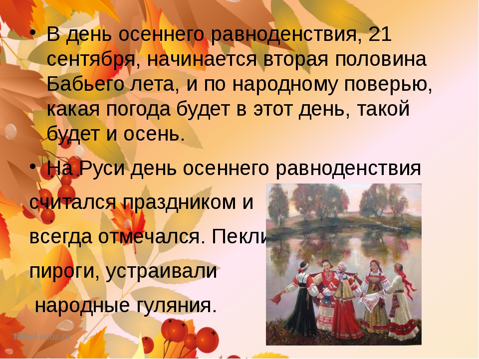 | «Найди матрешку». «С какого дерева листок». Ознакомление детей с народными праздниками. Беседа о традициях русского народного праздника «Рябинник». Беседа о красоте русской природы, рассматривание репродукций картин И.Грабарь» Осенний день», И. Левитан «Вечерний звон», «Осень», «Золотая осень. Слободка», И. Остроухов «Золотая осень»