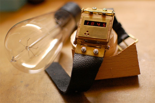 Наручные самодельные часы на вакуумном индикаторе, сделанные в стиле стимпанк. Материал взят с сайта www.johngineer.com. Эти наручные часы собраны на основе ИВЛ-2 дисплея. Изначально купил несколько таких индикаторов, чтобы создать стандартные настольные часы, но после размышлений понял, что можно построить стильные наручные часы тоже. Индикатор имеет ряд особенностей, которые делают его более подходящим для этой цели, чем большинство других советских дисплеев. Вот параметры: