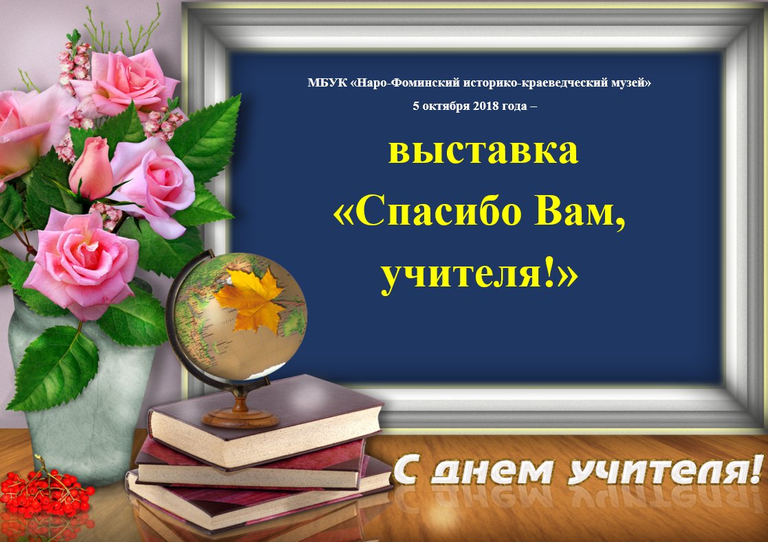 | 05.10.19 | 10:00 | “Земной поклон учителям” – книжная выставка, громкие чтения стихов, посвященные Международному дню учителя. | Библиотека семейного чтения “Централизованная библиотечная система Малаховка” |
