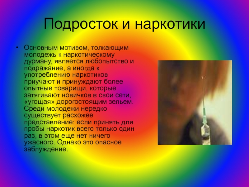 Наркотики – это вещества, способные вызывать состояние радостного опьянения, привыкание и зависимость.
