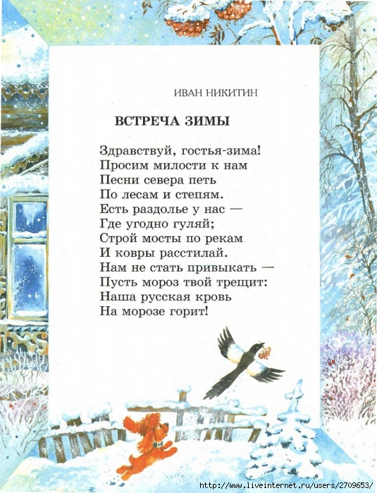 И. Никитин «Встреча зимы» стр. 62, выучить наизусть