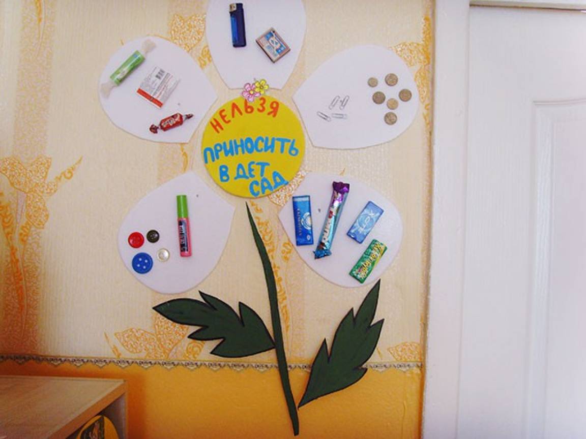 Так же в приемной изготовлен стенд для детей и родителей «Нельзя приносить в детский сад» (как показывает практика очень полезная информация).