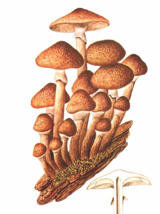 Опята летние относятся к семейству строфариевых, которое насчитывает более 100 разных видов шляпных грибов, растущих как на мертвой древесине, так и на травянистых остатках, мхе (рис. 9).