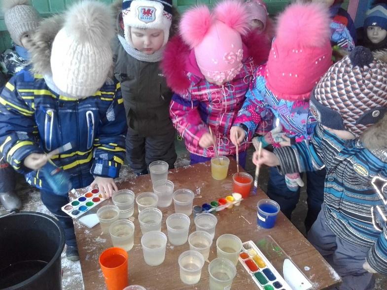 Зима Опыт 1 Прозрачность льда Цель: познакомить со свойствами льда. Ход опыта: В прозрачную ёмкость необходимо положить мелкие предметы, залить водой и поставить на ночь за окно. Утром рассмотреть, как сквозь лёд видны замёрзшие предметы. Вывод: предметы видны через лёд потому, что он прозрачен. | Зима Опыт 2 Уличные тени от фонарного света Цель: показать на опыте, как образуется тень; рассмотреть зависимость тени от источника света и предмета, их взаиморасположение. Ход опыта: Когда появляется тень? (Когда есть источник света). Что такое тень, почему она образуется? (Это тёмное пятно: тень образуется, когда световые лучи не могут пройти сквозь предмет, за этим предметом лучей света меньше, поэтому темнее. Вывод: тень появляется при наличии света и предмета. Очертания тени и предмета схожи. Чем выше источник света, тем короче тень. Чем прозрачней предмет, тем светлее тень. Тень может образовываться не только от солнца, но от любого источника света. |