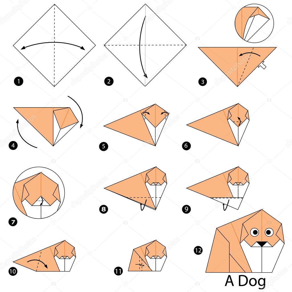 Как сделать оригами собаку. Контур собаки-оригами