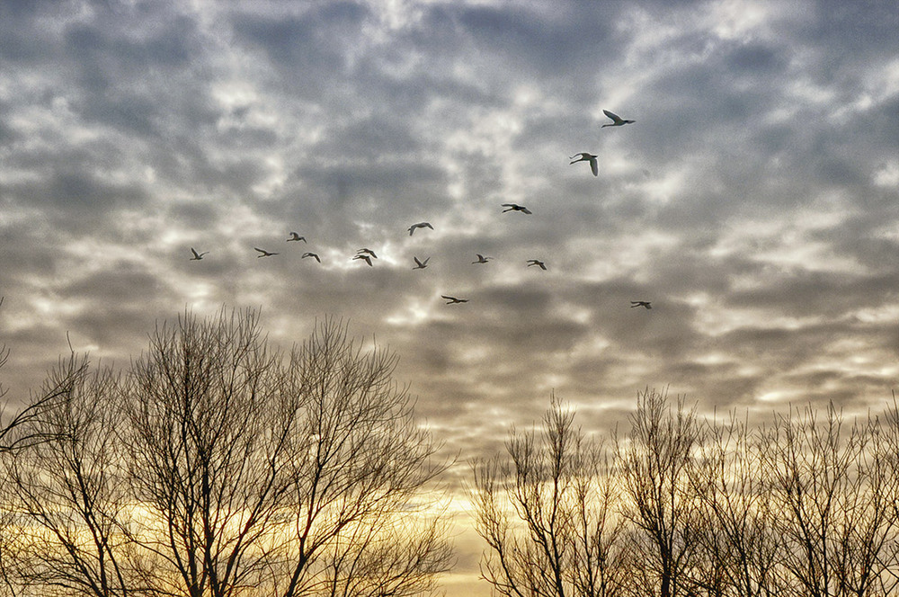 Журавли летят клином, во главе которого опытный вожак. © Don SniegowskiСкворцы отправляются в теплые страны с наступлением холодов – в сентябре-октябре.