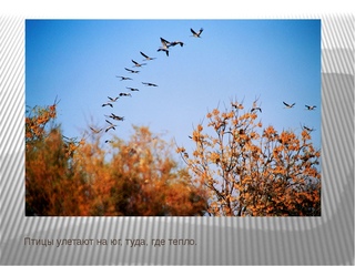 – Почему птицы улетают в теплые края? (потому что здесь наступают холода, а зимой нет насекомых).