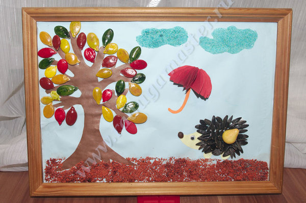 Вот ниже я предлагаю несколько простых схем для осенних поделок из природного материала в виде художественного панно.