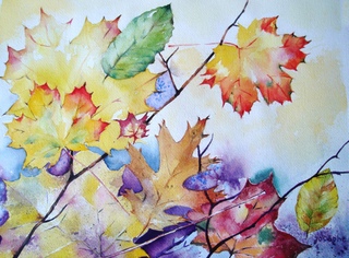 Все эти цвета должны лечь в основу работы о переливающейся при последних теплых лучах солнца листве.