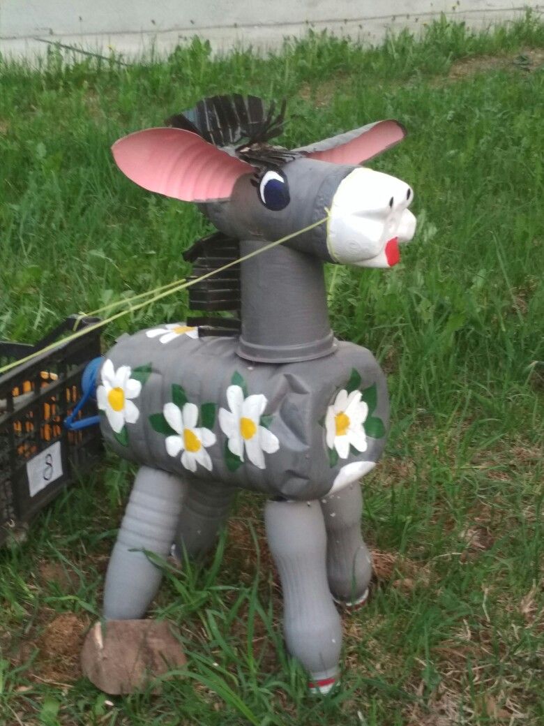 Источник: https://dacha.help/sadovyiy-dekor/oslik-iz-plastikovyh-butylok-svoimi-rukami-poshagovo-dlya-nachinayushchih