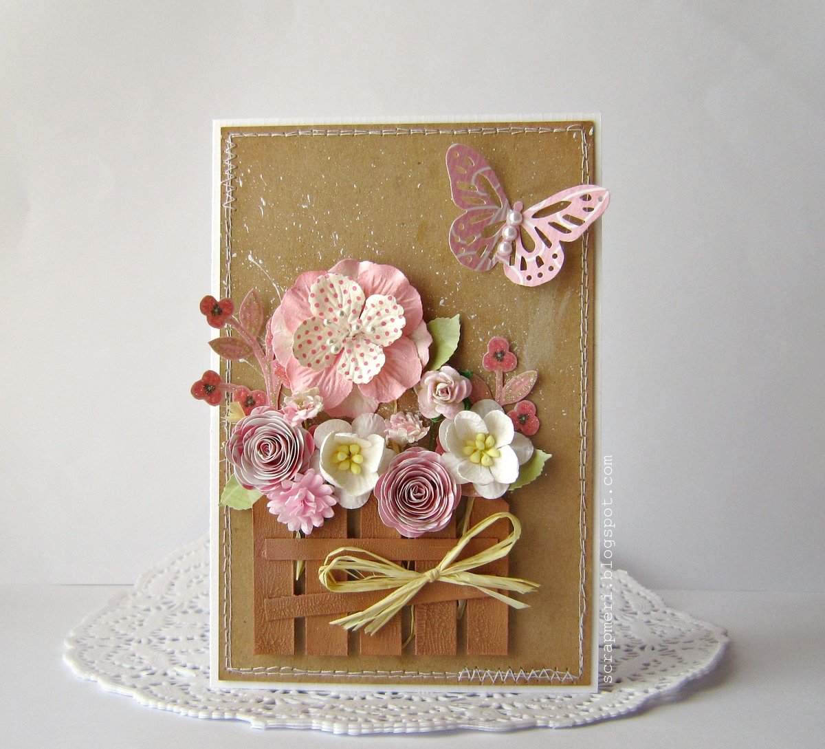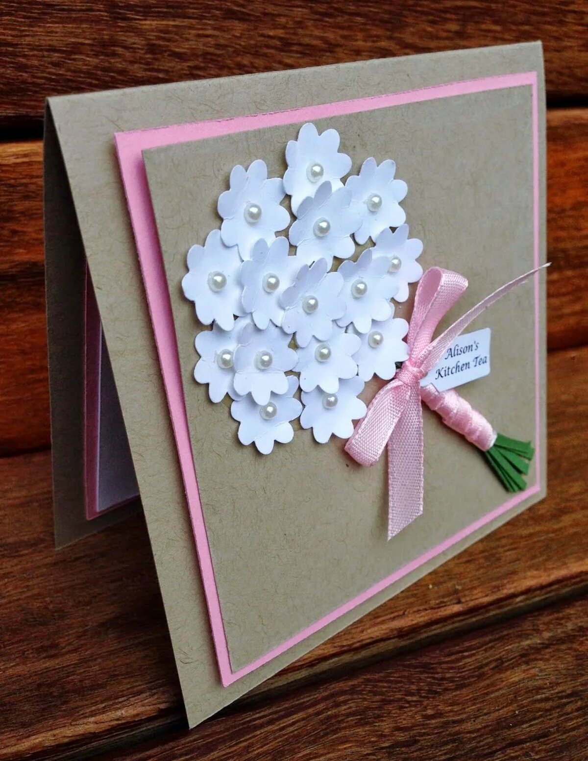 Цветы своими руками можно делать не только на верхней части открытки, но и внутри.