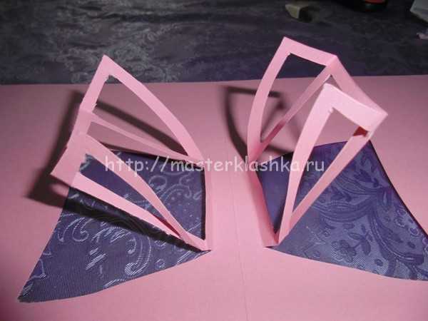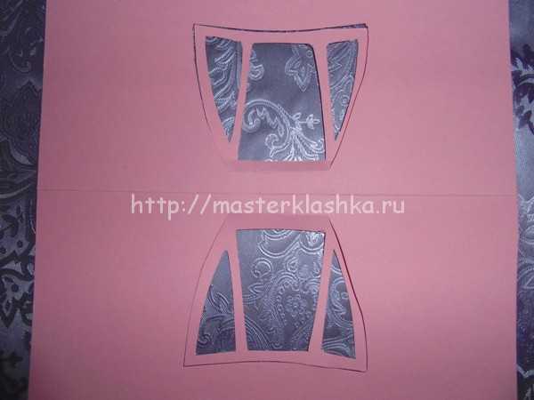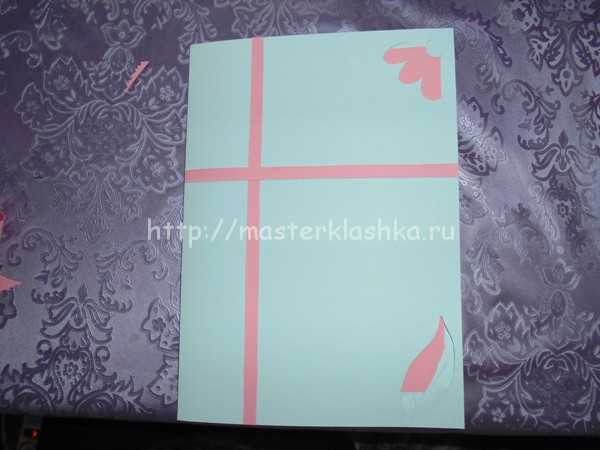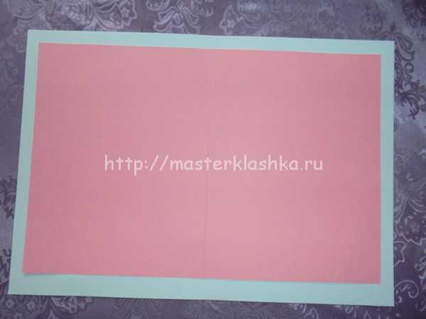Складываем розовую бумагу пополам и прикрепляем к ней распечатанный шаблон