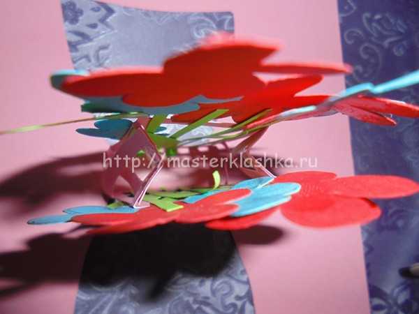 Делаем изгибы, чтобы при открытии и закрытии открытки наша ваза с цветами не помялась