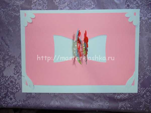 Итак, представляем поэтапный мастер-класс по изготовлению объемной поздравительной открытки.
