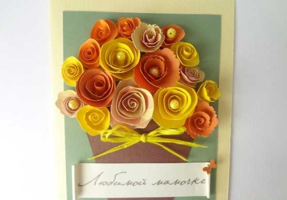 Не для кого, не секрет, что все женщины любят цветы и Ваша мама не исключение. Красивые и нежные букеты цветов из бумаги на поздравительной открытке порадуют маму. Если Вы хотите подарить открытку на 8 марта, то цветочная тематика особенно актуальна, ведь именно весной расцветают самые красивые цветы.