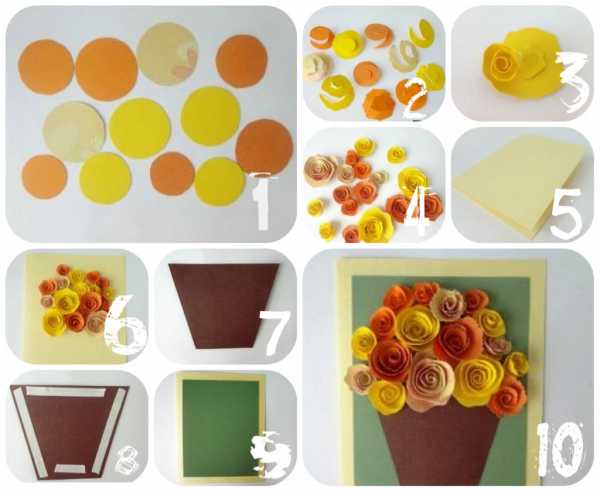 К горшку прикрепите ленточку и приклейте бумажку с надписью. Открытка маме готова.