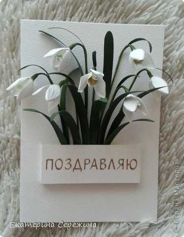 Первая красивая открытка из бумаги делается легко и просто. Правда, с первого взгляда, кажется, что она выполнена в какой-то сложной технике. Кстати, эта техника называется квиллинг.