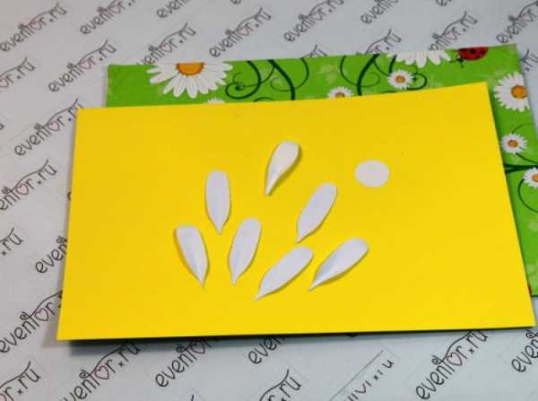 1. Из обычной белой бумаги А4 вырежи лепестки ромашки и круглую серединку.