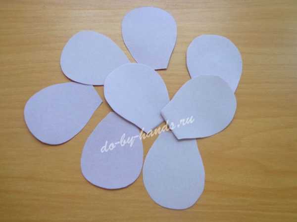 Слегка «завить» краешки лепестков при помощи карандаша или ручки, а потом приклеить их по контуру серединки. Аналогичным способом сделать точно такой же второй цветок.