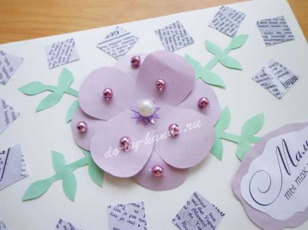 Уберите остатки горячего клея с открытки. Открытка любимой мамочке из бумаги, сделанная своими руками, готова. Осталось только подписать. Дарите вещи ручной работы родным и радуйте своих близких.