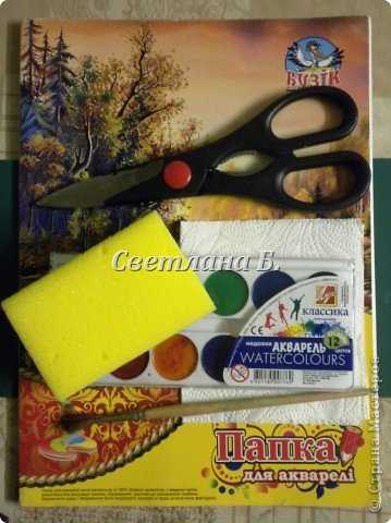 Акварельными красками тонируем лицевую фактурную сторону бумаги , проводя кисточкой от края к центру.