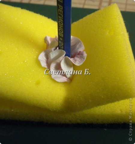 Маленькую заготовочку удобно сжимать на тонком кончике ручки кисточки.