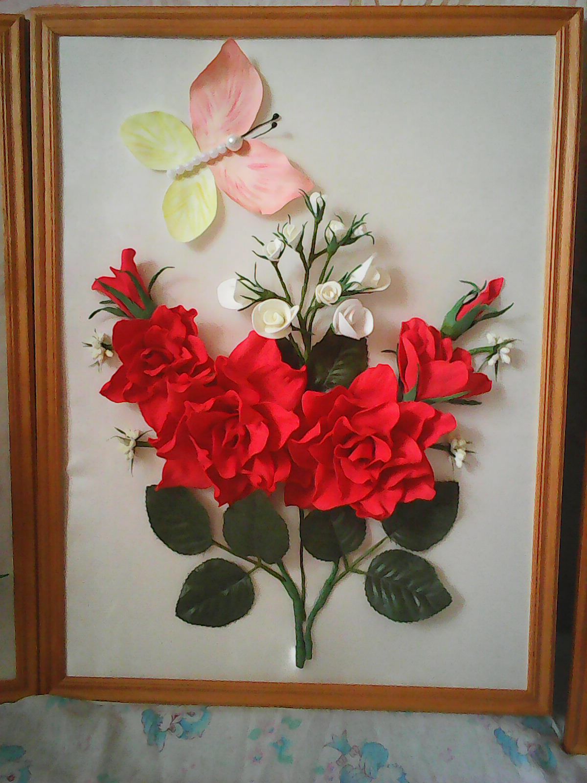 В этом естестве заключается вся прелесть фоамирана, поэтому цветы из фоамирана часто служат основой панно. Фоном можно взять хотя бы мешковину, выбрать изящную рамку, получится классическое панно.