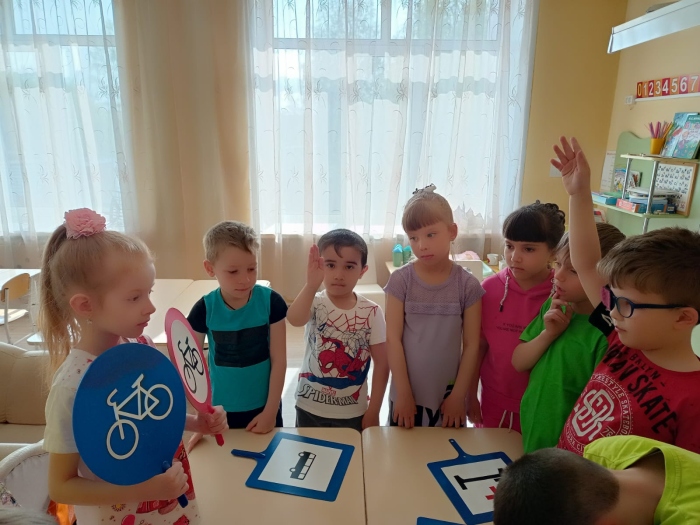 Детям предлагаются карточки с различными ситуациями на дороге, они должны подобрать необходимые атрибуты и дорожные знаки к дорожной ситуации.
