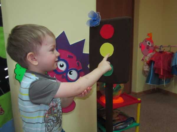 Малыши знакомятся со знаками наземного и подземного пешеходного перехода и изучают сигналы светофора. С детьми проигрывается дорожная ситуация: один выполняет роль пешехода, а другой — водителя автомобиля (при этом каждый ориентируется на свой светофор).