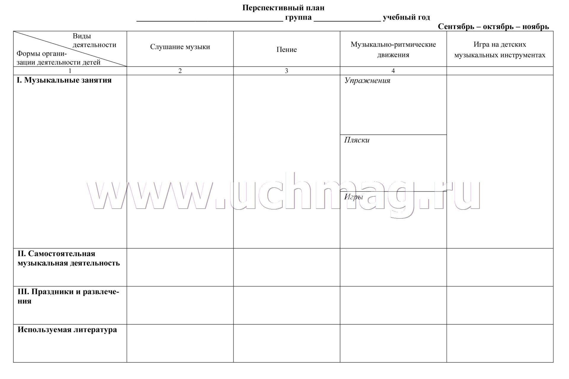 Муз. рук.: В своей работе использую следующую форму перспективного и календарного планирования.