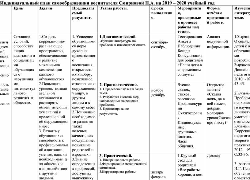 Изучение новых программ и пособий по теме и смежным наукам и дисциплинам. | Постоянно | |