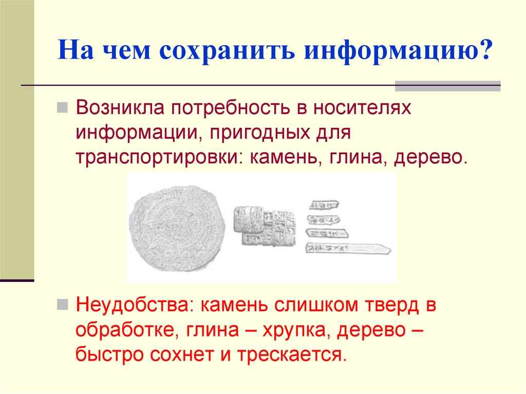 Носитель информации — то, на чем для хранения информации люди оставили рисунки или знаки