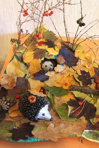 Можно для поделок использовать сухой природный материал клочки сена, семенные крылышки (как на поделке ЕЖИК с фото ниже). Такие семенные крылышки до самой зими (и зимой тоже) висят на деревьях ясеня, прямо крупными пучками. Сорвал 5 таких пучков и вот вам целая куча иголок для ежика. Также вы можете взять еловую шишки и щипцами выдрать из нее все чешуйки — они тоже могут стать колючей шубкой для ежика.