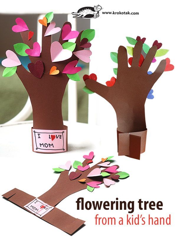 Шаг 3: Работая быстро, помогите ребенку положить руку на юбку дерева, где вы хотите, чтобы рисунок был. Держите руку опущенной, сильно надавливая на каждый палец и на середину ладони. Держите руку на юбке дерева около 15 секунд, чтобы получить хороший отпечаток.
