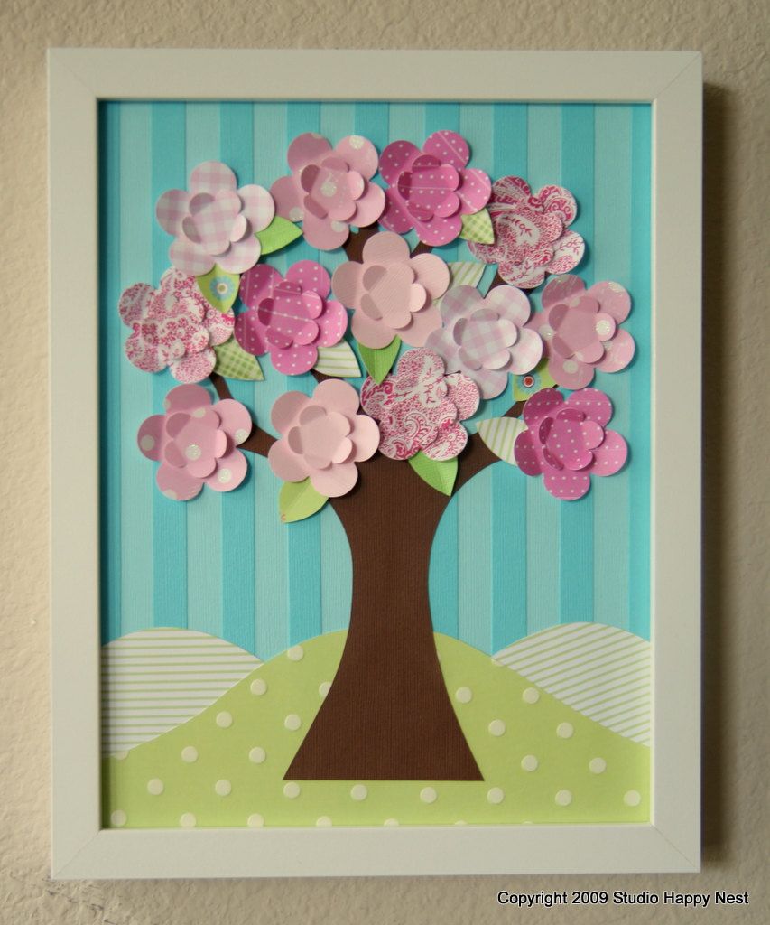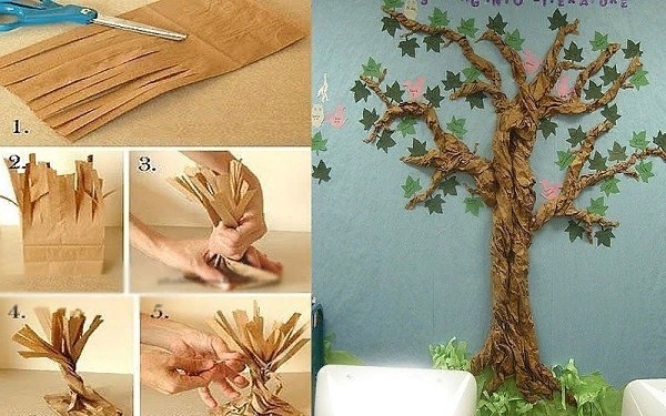 Выберите красивую оберточную бумагу и просто прикрепите ее к стене, имитируя форму настоящего дерева.
