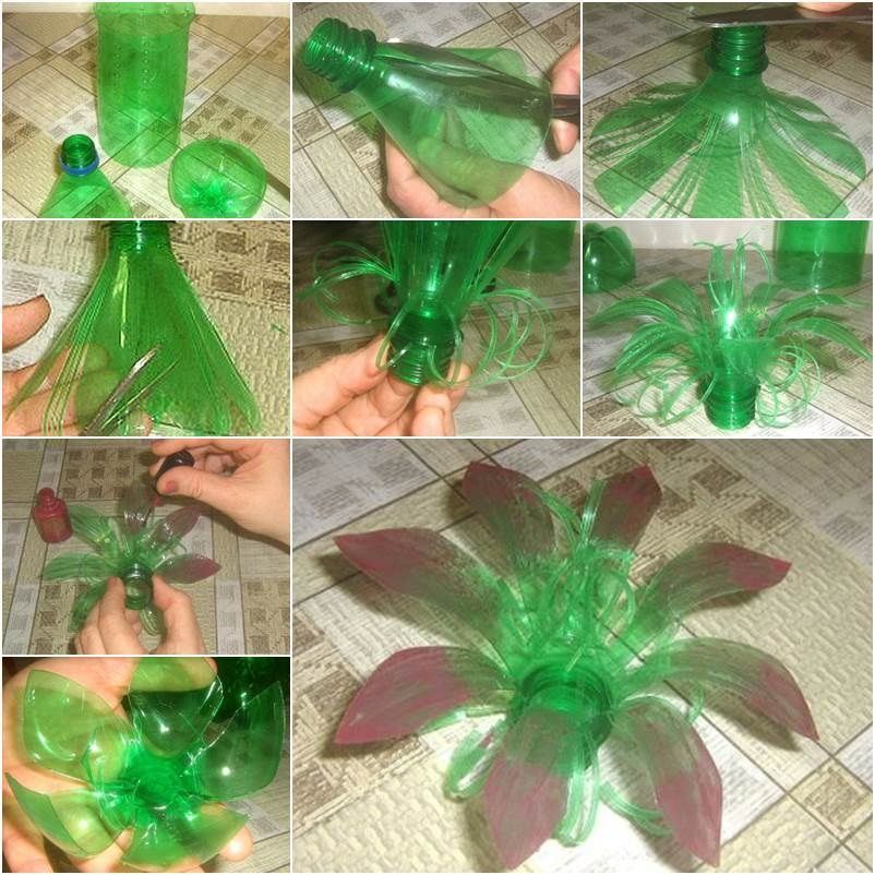 Вариантов тут очень много. Просто начните делать. Сразу, может, получится и не идеально, но вы поймете, что и как можно исправить. Посмотрите ещё несколько картинок с пошаговыми фото процесса изготовления цветов из пластиковых бутылок.