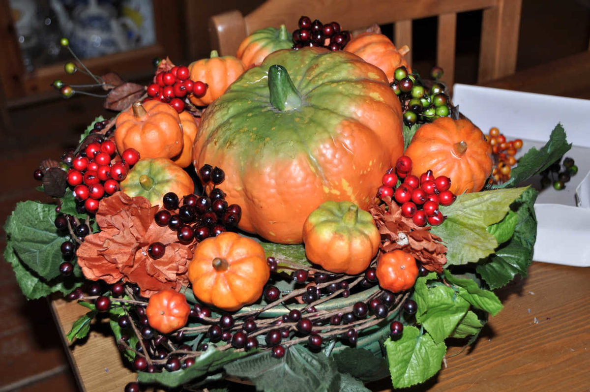 Всем известно, что колоски пшеницы являются ассоциированием с плодородием. Сделайте букет из некоторого количества колосков или используйте любую другую злаковую культуру, и оформите, как украшение праздничного стола. Для того, чтобы повесить на входную дверь венок, сплетите его из злаков и украсьте маленькими желтенькими листьями.
