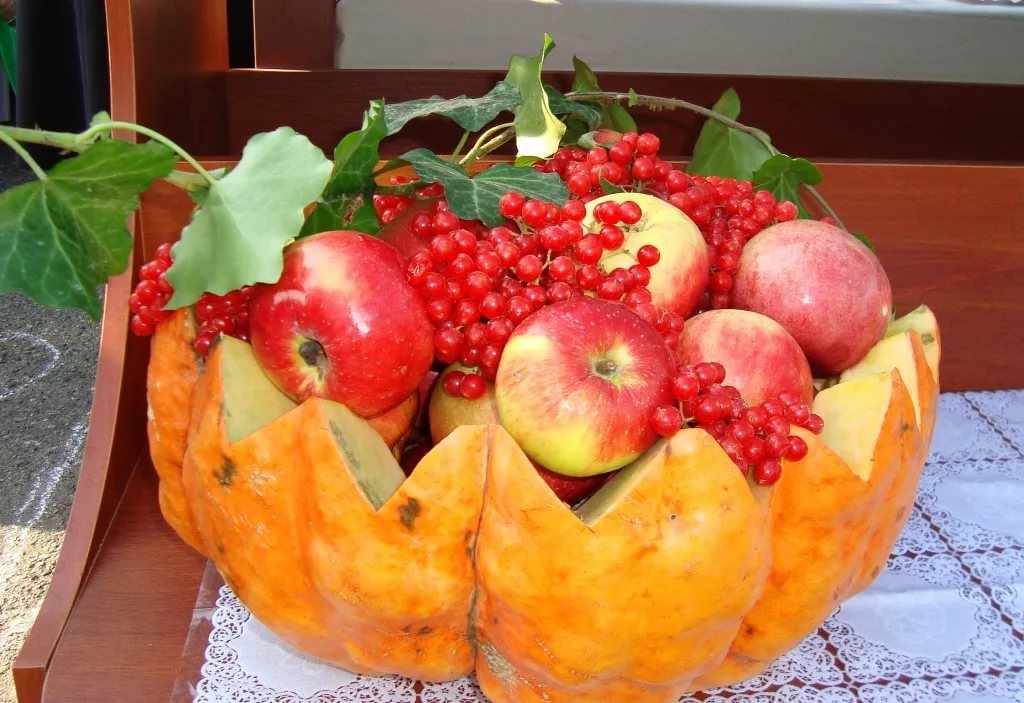 Чаще всего из этого материала изготавливают фигурки забавных зверюшек, яркие и красивые панно, оригинальные гирлянды и другие украшения. Кроме того, такие крупные овощи, как тыква, могут использоваться в качестве «домика» или чаши.