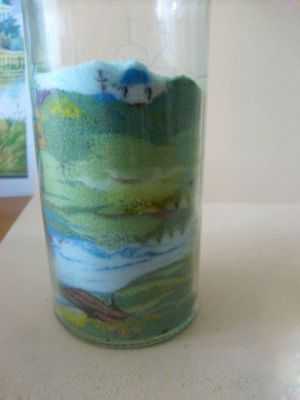 Для насыпушки из крашеной соли можно выбрать любой рисунок – это могут быть абстрактные полосы, удачно сочетающиеся в цветах, если вы новичок, а может быть и красивый букет цветов или удивительный пейзаж. В любом случае, такая поделка привлечет внимание ваших гостей.