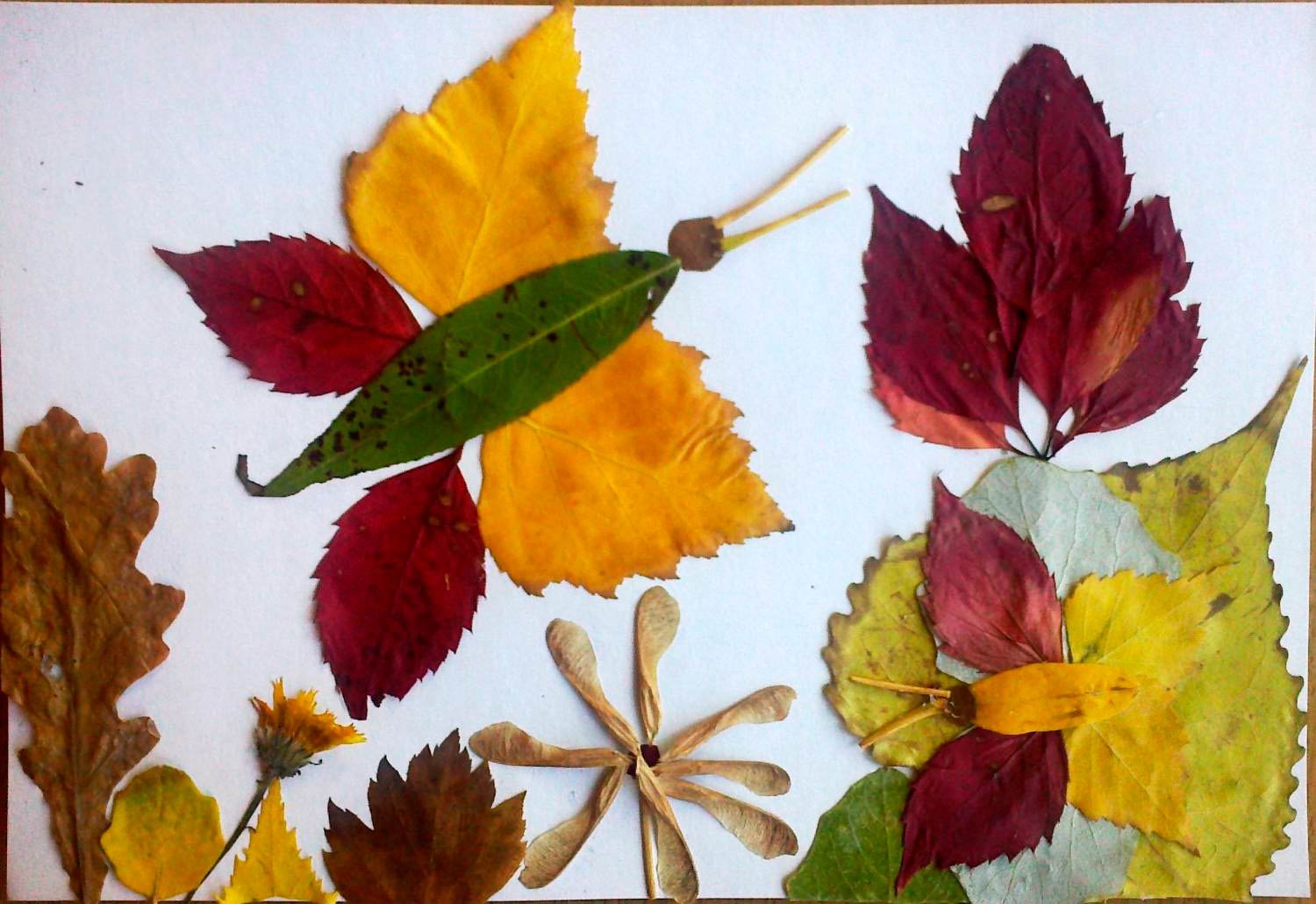 Стоит отметить, что сбор и заготовку листьев для таких поделок можно проводить по желанию только осенью, летом можно сушить листья между страницами книг, чтобы композиция выглядела более красочно, так как, например, осенью уже сложнее найти красивые зеленые листья подходящей формы и размера.