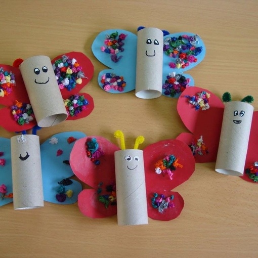 5.Вы больше никогда не выбросите пустые тюбики от туалетной бумаги после создания этих симпатичных жуков. Вот как сделать пчелку, божью коровку и бабочку.
