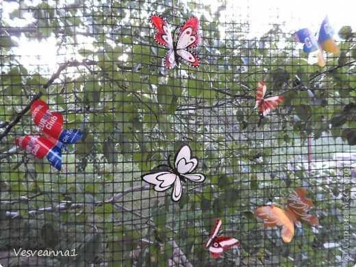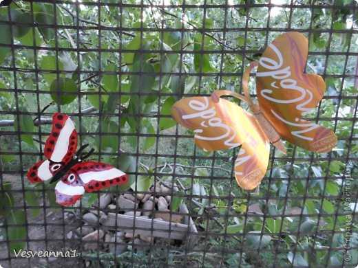 Бабочки из пластиковых бутылок и металлических банок.