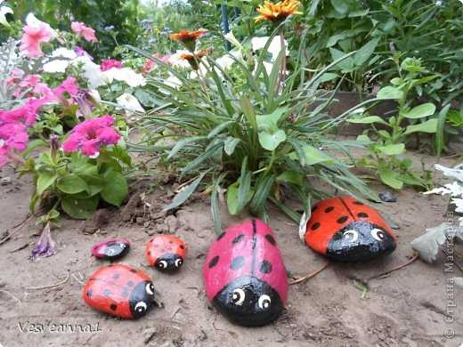 Семейка божьих коровок из камешков.