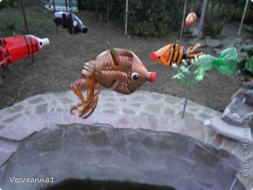 Пластиковые рыбки из моего первого МК летают над бассейном. Тоже нашли свое применение.