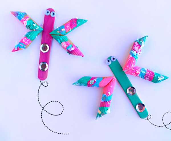 Наиболее доступная поделка стрекоза для детей изготавливается по простому принципу: