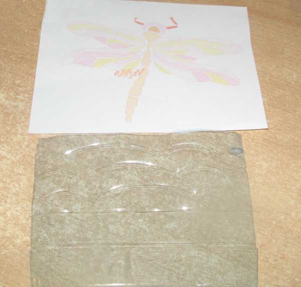 Используем трафарет стрекозы. Я вырезала шаблон размером не больше 10 см шириной.