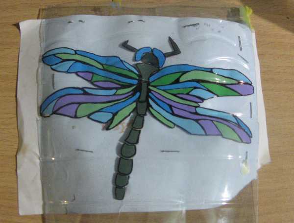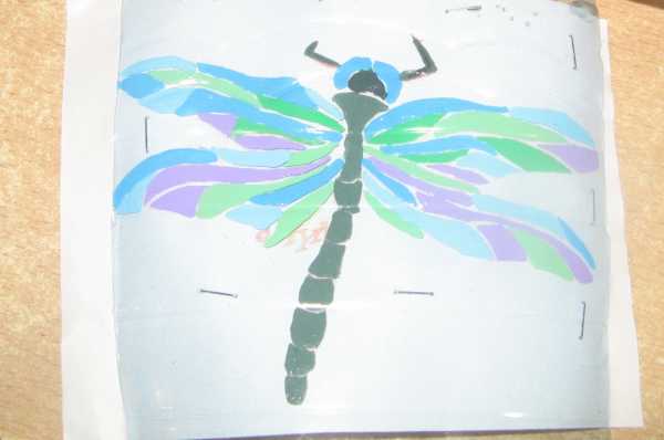 Когда покрасили убираем в сторону и ждём когда краска полностью подсохнет. Когда краска полностью высохла обводим нашу стрекозу черным маркером.