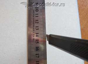 Берем картон или бумагу, намечаем боковой стороной ножниц или тупой стороной канцелярского ножа линию, отступив от края 5 см.
