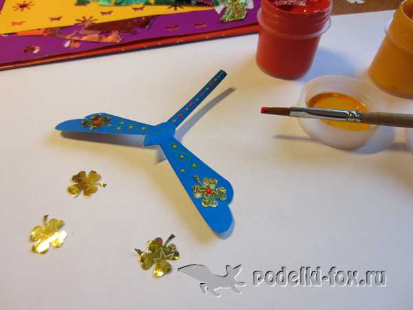Если это не первая ваша стрекоза, то можно ее на этом этапе украсить и раскрасить, а если первая, то лучше сделать эту пробной, чтобы понять принцип, и раскрасить ее в конце. Я украшу сразу.